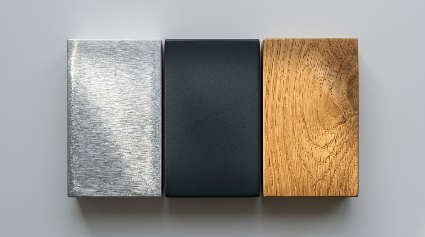 Farbe existiert in einem Rendering nie isoliert — sie interagiert mit dem Material, das sie trägt. Matte Oberflächen schlucken Licht und wirken schwerer. Hochglanz-Lacke reflektieren die Umgebung und lassen Farben heller, aber auch kühler erscheinen. Gebürstetes Metall streut Licht diffus und verändert die Farbwahrnehmung je nach Betrachtungswinkel.